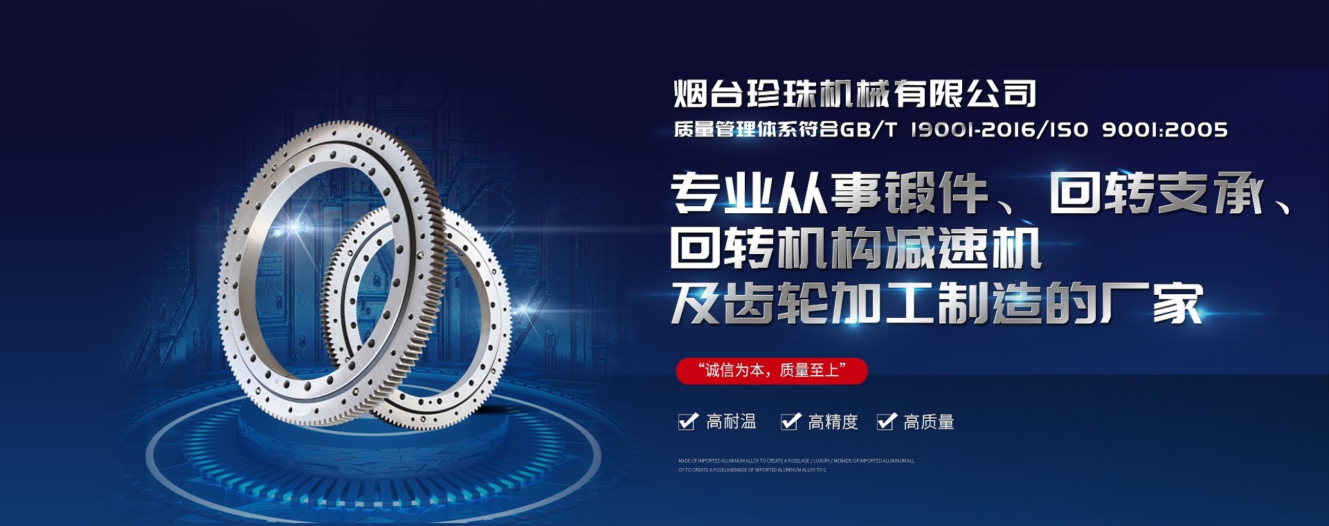 世界杯官网-世界杯(中国)一站式服务官网 系股份制企业,位于中国金都山东招远市张星镇工业园。公司成立于1994年,注册资本1426万元。占地面积81000平方米,建筑面积41000平方米。 公司主要产品有回转支承、回转机构减速机、环件、汽车齿轮、内燃机齿轮、混凝土搅拌车用滚道、法兰等。